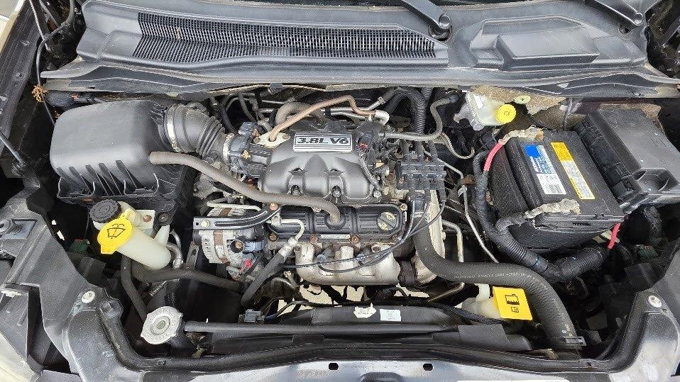 Here’s a great looking Ram Dodge Caravan 3.8L V6 with 153k. It has a beautiful Dark Metallic Purple paint job, it looks black until it hits the bright sun. The interior is clean and shows well. It has remote automatic slide doors and rear hatch, power seat, and power adjustable pedals. It has rear Ac/Heat, power windows and locks and Sto-n-go seating. When the seats are stored, you can haul a full 4’x8’ sheet. It has newer tires, and the transmission and engine are running great. It has typical rust on both rear fenders.