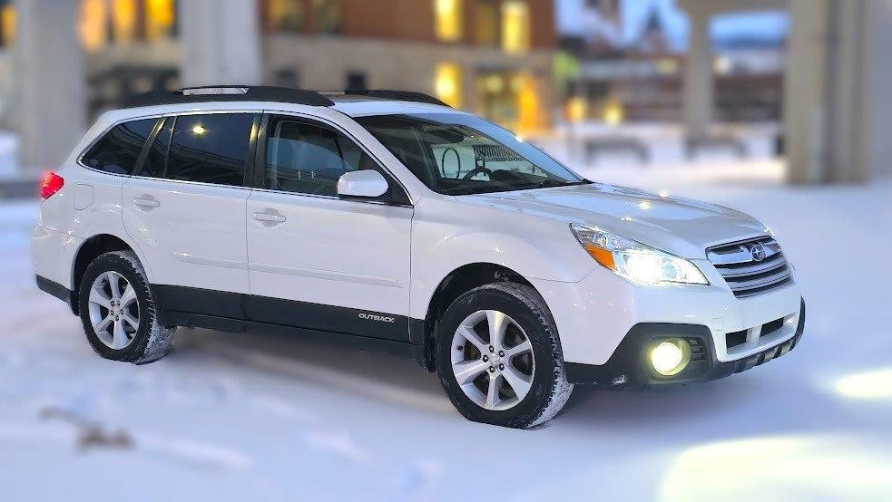 Here’s a 2013 loaded AWD Outback LIMITED 2.5L in Satin White Pearl. Loaded heated seats, driver and passenger power seats. A 440-watt Harman Kardon system and moonroof, rear A/C vents, rubber Subaru mats.